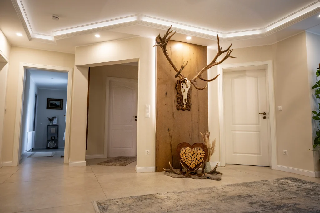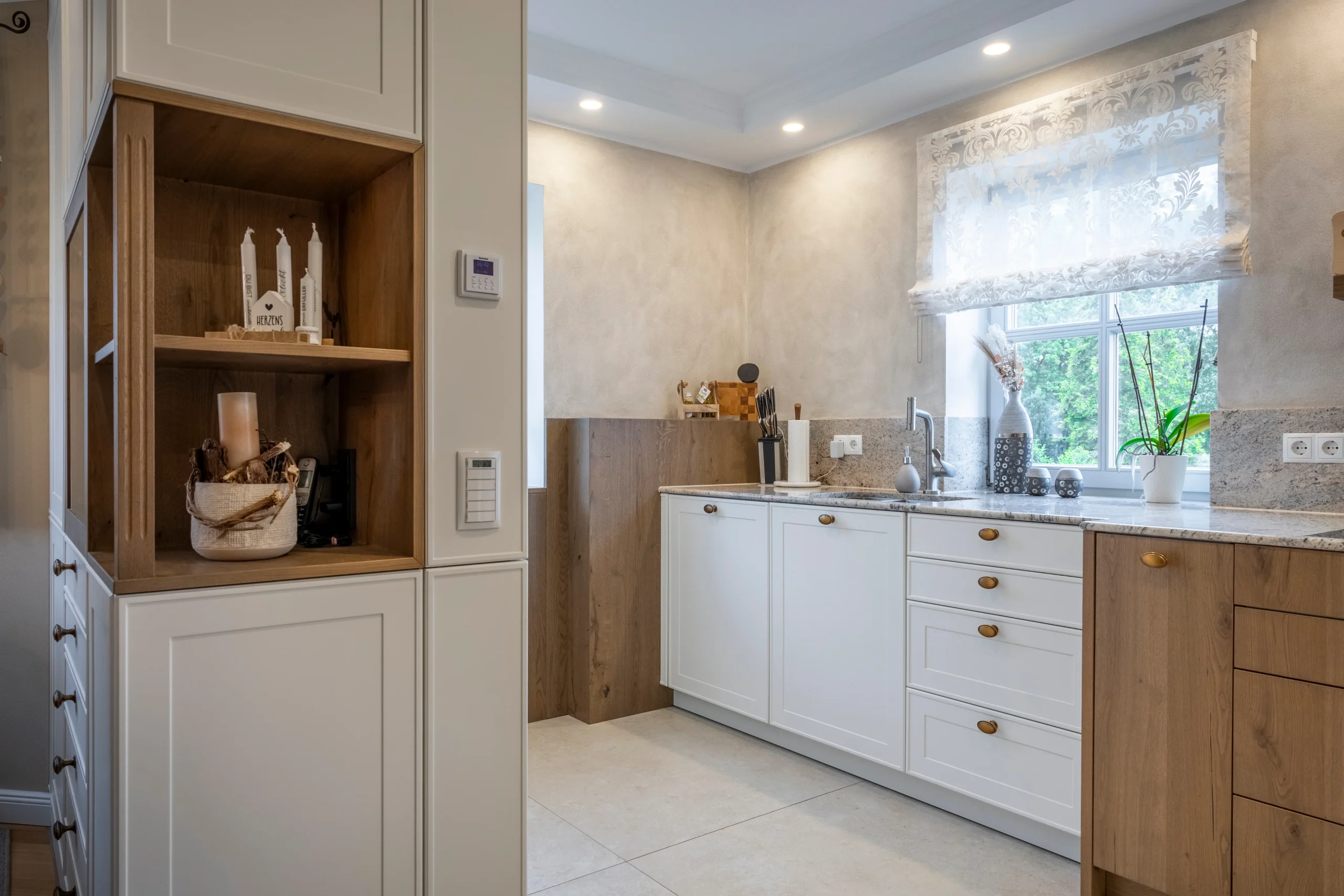 Junges Paar kauft ein „in die Jahre gekommenes“ Haus mit ländlicher Prägung; Das neue Einrichtungskonzept soll diesen Ansprüchen „wir kochen sehr gern“ gerecht werden; Es soll alles offener und praktischer werden; Größter Wunsch die Gestaltung soll das Landhaus „rauskehren“; Der Stil soll ganzheitlich angesetzt werden; Bestehendes soll erhalten werden, was nicht mehr geht wird geändert; Ehrliche, edle Materialien werden zu einem gesamtheitlichen Ergebnis.